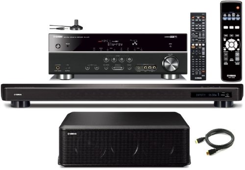Yamaha CINEMA DSP YSP-2200 IntelliBeam 7.1 HD Digital Audio True Surround Sound Projector Low Profile 16-Speaker Soundbar with a Slim 100 watt Powerful Subwoofer + Yamaha RX-V473 Surround Realism CINEMA DSP 525 Watts AV Receiver + Yamaha Universal iPod / iPhone Dock