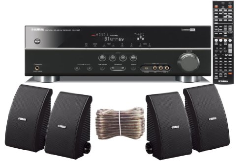 Yamaha 3D-Ready 5.1-Channel 500 Watts Digital Home Theater Audio/Video Receiver With a USB Digital Input and Connecting Cable to Play & Charge Your iPod or iPhone & Control Remotely + Set of 4 Yamaha All Weather Indoor / Outdoor 180 watt Wall Mountable Natural Sound 2-way Acoustic Suspension Speakers - Black + 100ft 16 AWG Speaker Wire